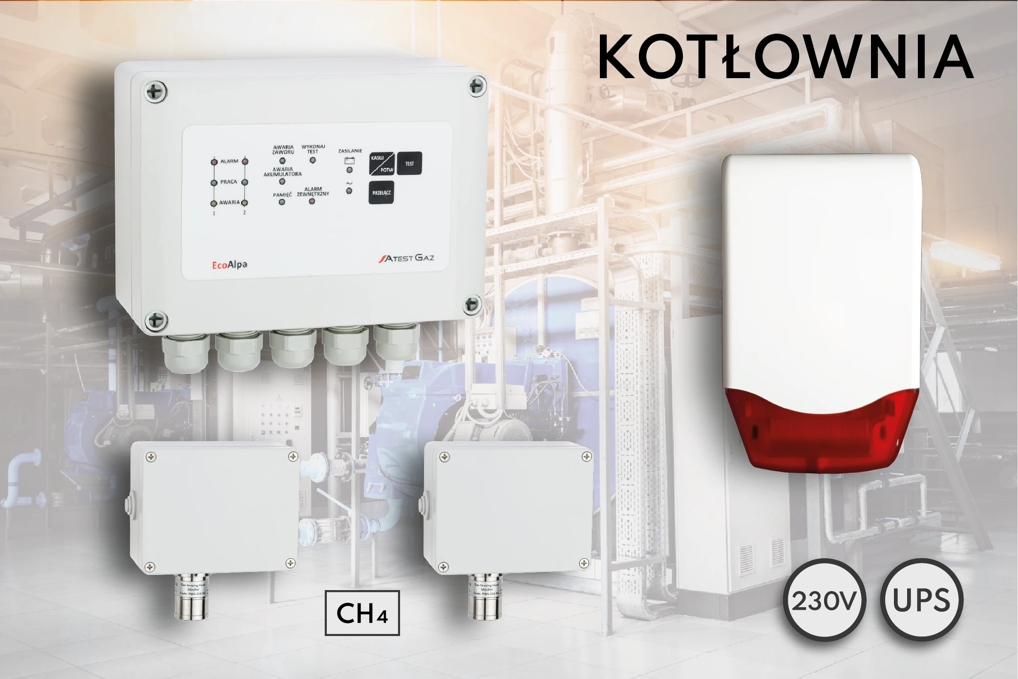 System Detekcji Gazu do kotłowni z 2 czujnikami + UPS